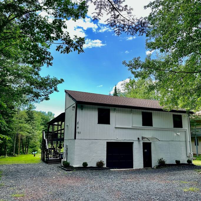 Hot Tub and Outdoor TV for 2025! Welcome to Lost in The Woods Chalet. A Newly renovated lakefront oasis has something for everyone. Kayaks and Outdoor Games Avail. May 1st - Oct 31st Beautiful gated community of Arrowhead Lake: two lakes, four beaches, three community pools (May - Sep), fitness center, billiard room (Visitor Wristbands and Gate Access req'd - Assoc. Guest Fee Details Below) Nearby (15-25 min): Jack Frost / Big Boulder Pocono Raceway Gouldsboro Statepark Kalahari Camelback