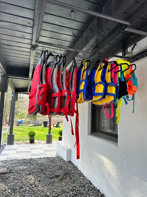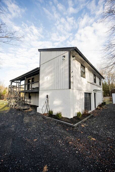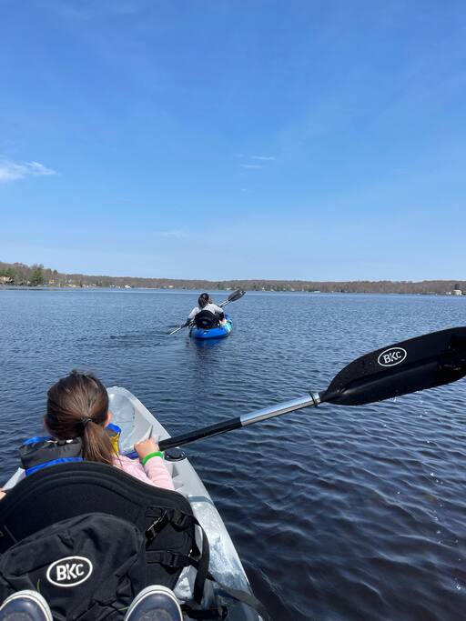 Secluded and tranquil lakefront property. Our home is located in a private alcove at the end of Arrowhead Lake (leading out to the big lake). If you are looking for a private place to sip your coffee, enjoy nature from your backyard, this is the place for you. We've recently added a new Hot Tub (5 Person) with an Outdoor TV, Perfect for enjoying the outdoors year round. Come enjoy a fully furnished home with everything needed for a wonderful vacation in the Poconos. Everything has been designed to be a warm space to rest and relax and we look forward to sharing it with you. Kitchen: Fully stocked kitchen for all your baking and cooking needs Baking and Cooking essentials ❅ Coffee Maker ❅ Toaster/Air Fryer ❅ Waffle Maker Dining Room: ❅ Room for 8 at Dining Room Table ❅ Room for 2 at Kitchen Counter Island Living Room: ❅ Comfortable fire place and lounge area with luxury furnishing Sleeping Areas: ❅ Sleeps 8 comfortably ❅ 3 Bedrooms & Downstairs Living Room with Sofa bed ❅ 2 Queens, 2 Twins (bunk), 1 Full (bunk) and 1 Full Size Sofa Bed ❅ All necessary bedding provided Bathrooms: ❅ 2 Full Bathrooms (1 on each floor) ❅ Towels and necessary bathroom essentials provided Downstairs: ❅ Large screen TV with Roku ❅ Digital Pinball Machine ❅ Lounging area with mini-fridge & putting green General Recreation: ❅ Wifi Throughout ❅ Stocked with many games for fun filled evenings Outdoor: ❅ 5 Person Hot Tub ❅ Outdoor TV ❅ Kayaks (May - Oct) ❅ Fire Pit and Adirondack Chairs ❅ Griddle/Grill ❅ Outdoor Games Parking: Room for 3-4 Vehicles ❅ Free electric vehicle charging (Stage 2 - 48 amp - J1772 plug: requires J1772 adapter for Teslas) Arrowhead Lake Community Guidelines: ❅ See fee details below ❅ Bookings less than 1 day before check-in cannot be accepted per HOA rules ❅ Bookings less than 4 days in advance require additional $100 expedited HOA registration fee Registration Information: ❅ Registration form link will be provided through reservation app. once your reservation is booked. ❅ Renters must submit guest information forms asap in order to meet association requirements. ❅ No refunds will be issued for not submitting your forms on time (4 days prior to check-in) and may result in reservation cancellation and/or additional community fees paid by guests. ❅ All Guests are required to be registered atleast 4 days prior to check-in (if registered less than 4 days is +$100 fee). ❅ Guest registration form includes full name of primary renter ❅ Vehicles entering must also be registered with a primary Driver, Make/Model and license plate ❅ Fishing Requires Permit (available at guest services and/or local bait and tackle stores)